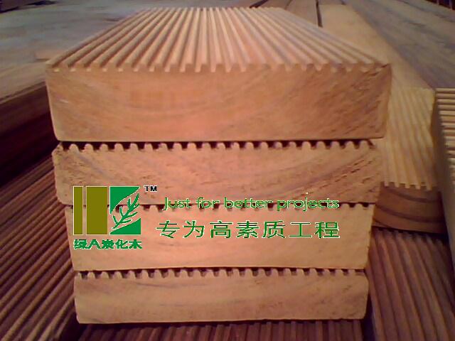 绿泽木业公司在经过一年的公关,成功开发出户外炭化木地板.
