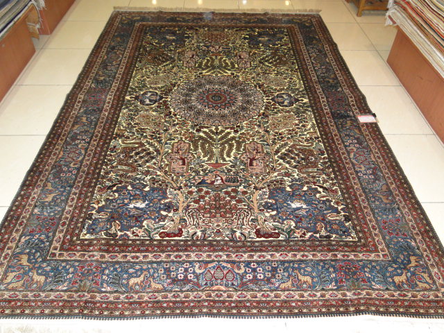 手工地毯的原料取于天然,植物染色,是绝对地绿色环保家居饰品。河南东方丝毯厂暨上海亿丝东方丝绸地毯销售处,常年从使出口手工地毯生产,定做,来料加工。